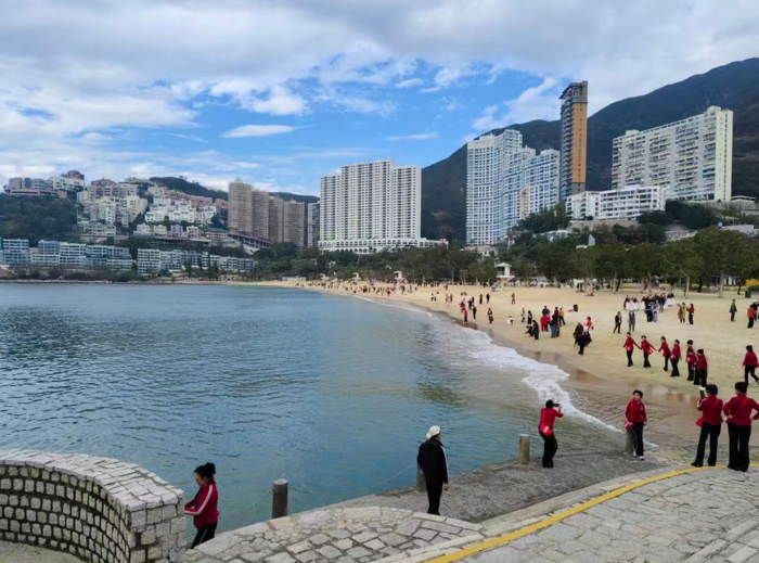 午后的时光留给浅水湾,这里是香港最具代表性的海湾之一。细软的沙滩绵延悠长,澄澈的海水泛着蓝色的波光,海浪轻轻拍打着海岸,溅起细碎的浪花。岸边的建筑风格雅致,既有西式洋房,也有中式楼宇,漫步在沙滩边的步道上,海风裹挟着咸湿的气息,不少游人或漫步赏景,或戏水玩沙,惬意又自在,一派悠闲景象。