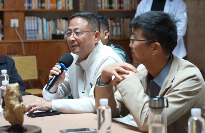 揭牌仪式结束后,茶文化高端论坛正式开启。丁以寿围绕茶文化进行了精彩的发言,深入剖析了茶文化的历史渊源、发展现状和未来趋势。现场各茶企代表也纷纷踊跃发言,分享了各自在茶产业发展中的经验和见解,共同探讨柯村茶产业的发展方向和策略。大家各抒己见,气氛热烈,为柯村茶产业的发展出谋划策。