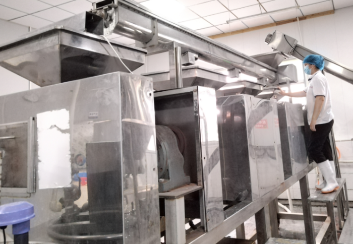 近日,走进安徽省合肥市肥东县马集工业园一一合肥安松食品有限公司的蒸煮车间里,年糕生产线上,机械轰鸣,工人忙碌有序,扑鼻而来的是阵阵水磨年糕的香味,还有满眼的干净整洁。